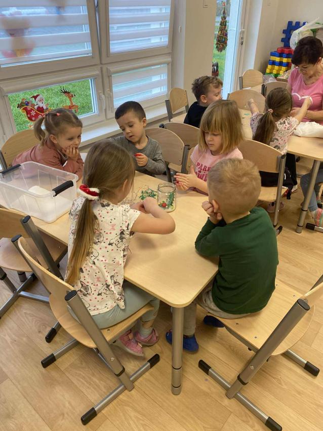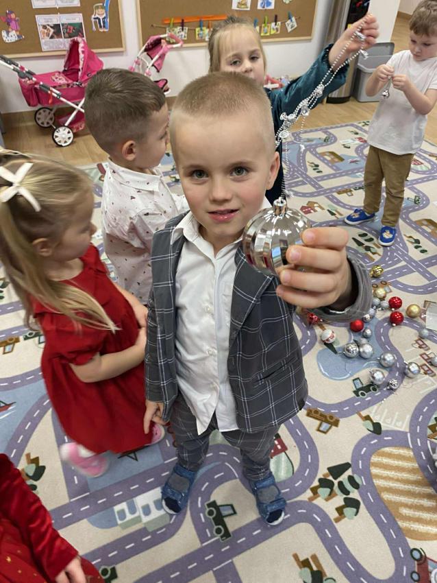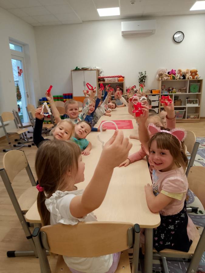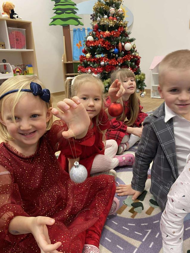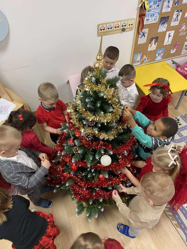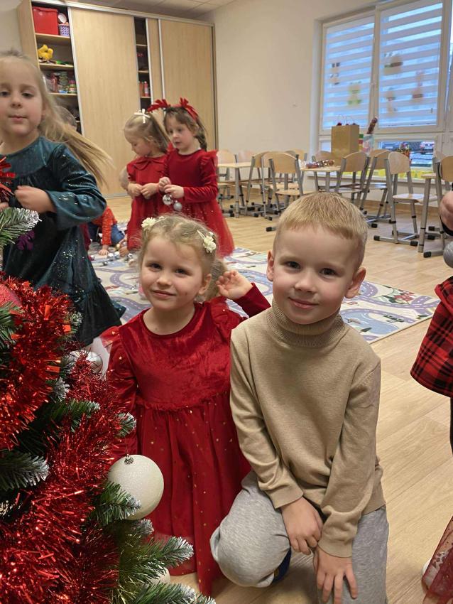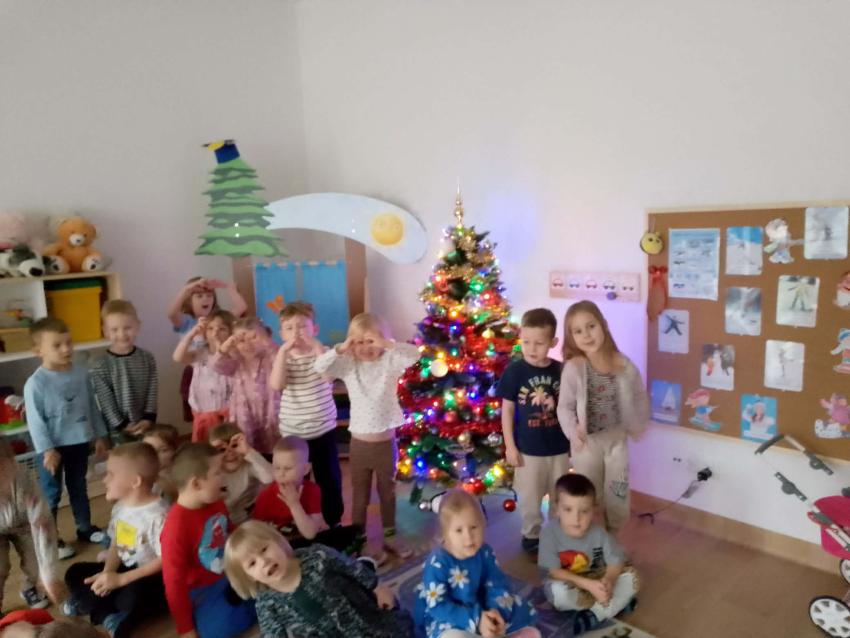 Dzieci wysłuchały opowiadania pt. ?Choinką do samego nieba?. Następnie, w radosnej i pełnej ciepła atmosferze, wykonały pracę plastyczną polegającą na ubieraniu papierowej choinki oraz wspólnie udekorowały prawdziwe drzewko świąteczne. Zajęcia wprowadziły dzieci w magiczny, świąteczny nastrój i sprawiły im wiele radości. ??