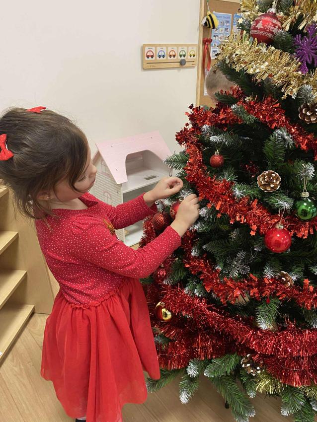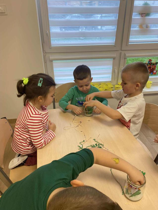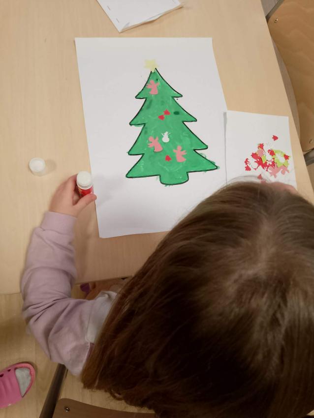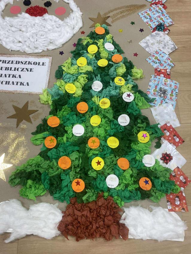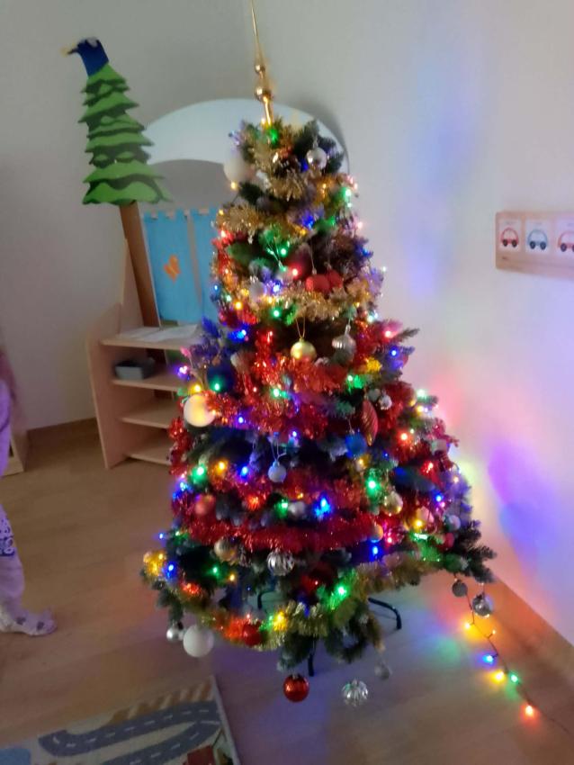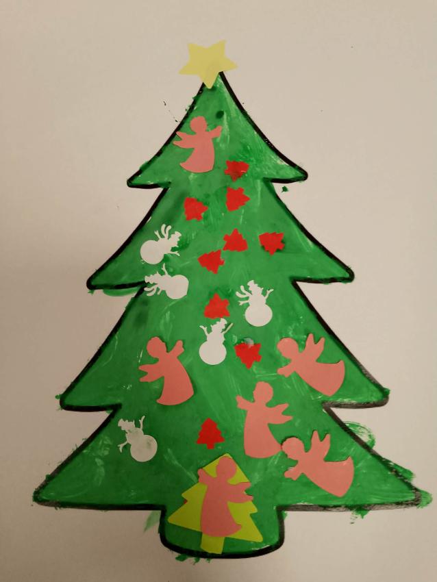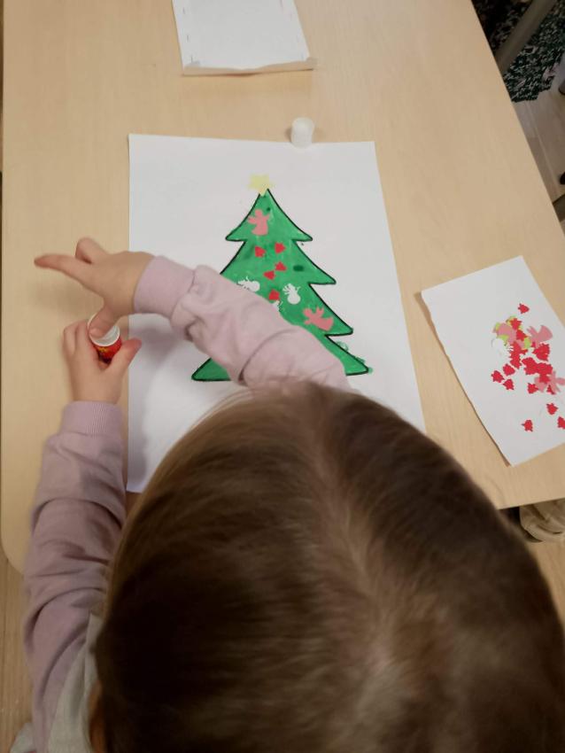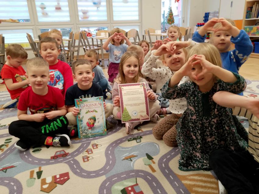 Dzieci wysłuchały opowiadania pt. ?Choinką do samego nieba?. Następnie, w radosnej i pełnej ciepła atmosferze, wykonały pracę plastyczną polegającą na ubieraniu papierowej choinki oraz wspólnie udekorowały prawdziwe drzewko świąteczne. Zajęcia wprowadziły dzieci w magiczny, świąteczny nastrój i sprawiły im wiele radości. ??