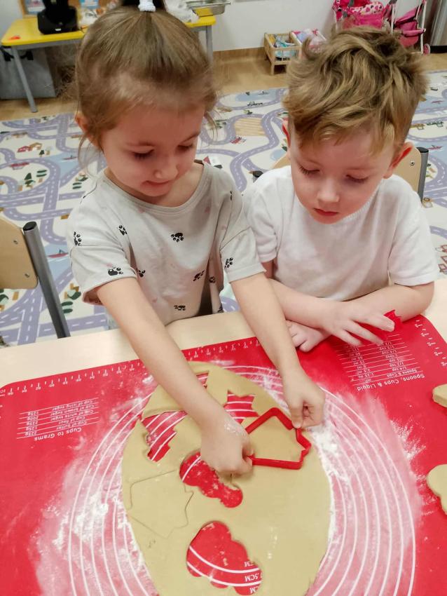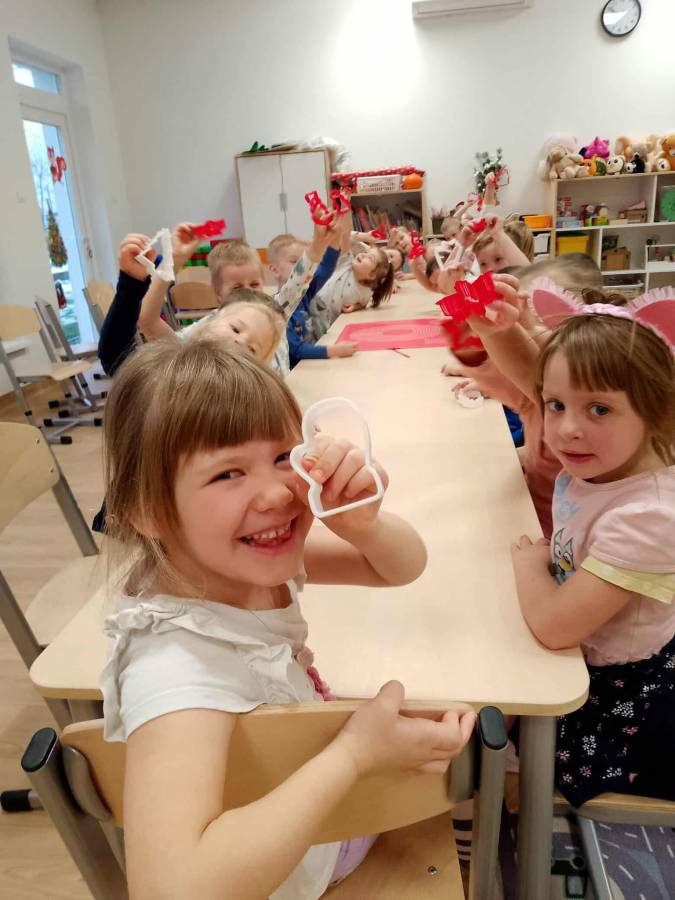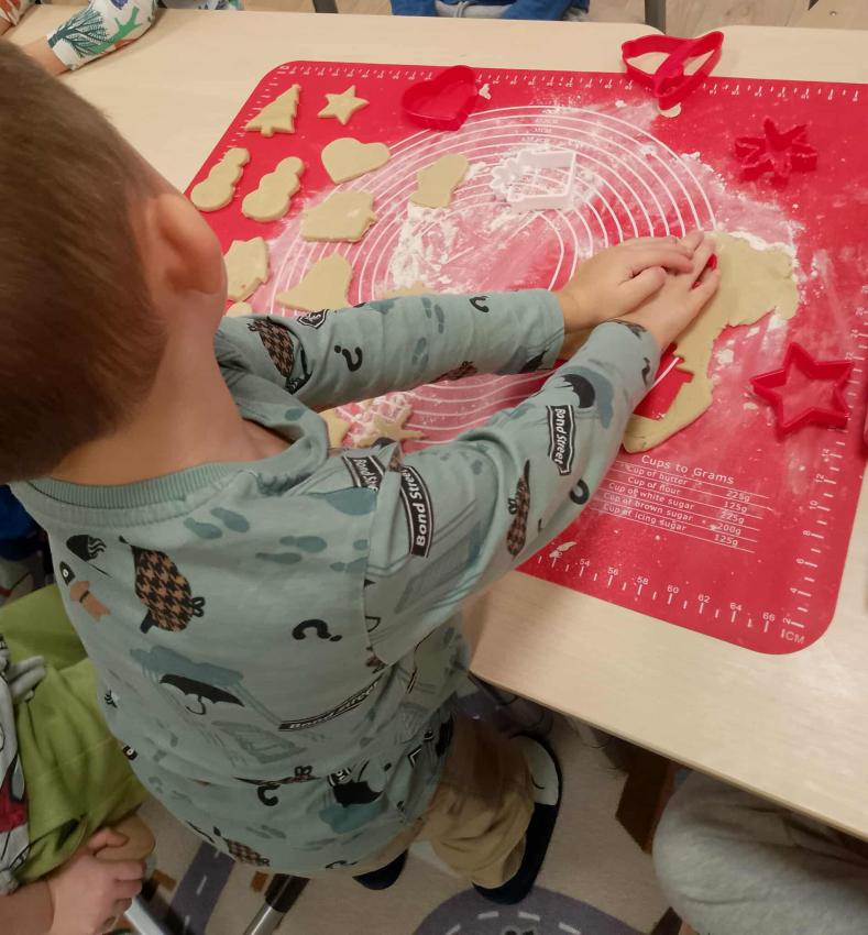 Dzieci wraz z Panią z radością czytały bajkę o elfach, a następnie wspólnie piekły pachnące pierniczki. Zajęcia sprzyjały rozwijaniu wyobraźni, samodzielności oraz umiejętności współpracy w grupie.