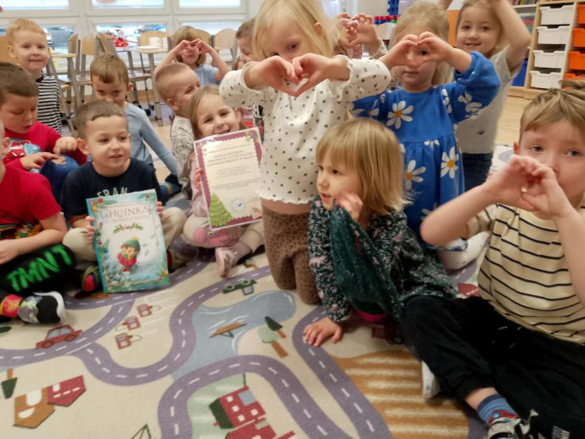 Dzieci wysłuchały bajki pt. ?Pierwsze święta Jeżyka Tadzika?. Podczas wspólnego czytania przedszkolaki poznały świąteczne zwyczaje i tradycje, wzbogaciły swoją wiedzę na temat Bożego Narodzenia oraz z zainteresowaniem uczestniczyły w rozmowie o rodzinnych obrzędach i symbolach świąt.